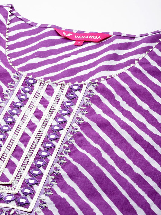 Buy 2 Get 1 FreeVendor:Dhiyona VADhiyona VA Women's Leheriya Printed Mirror Work Pure Cotton Kurta with Trousers & With Dupatta