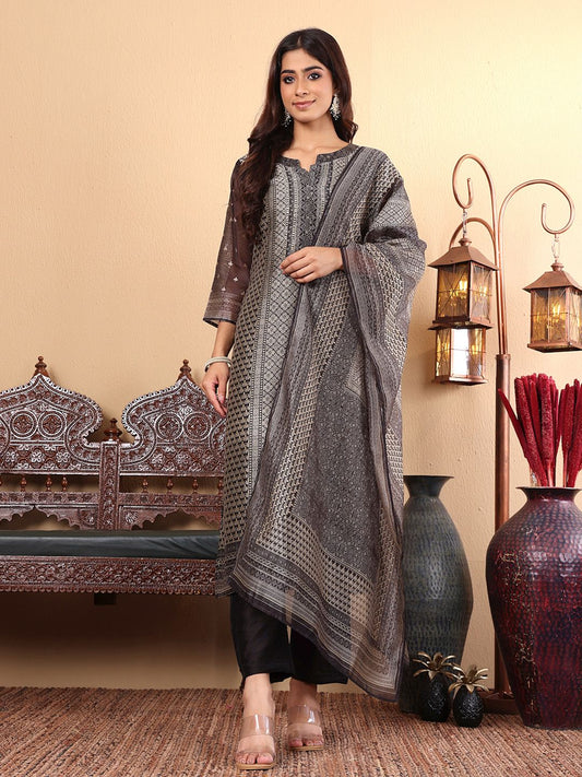 Buy 2 Get 1 FreeVendor:Dhiyona VADhiyona VA Women'sEthnic motifs Printed Chanderi Silk Straight Kurta with Trousers & Dupatta