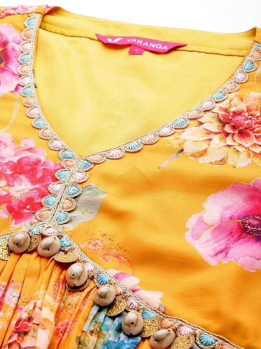 Dhiyona VA Women's Mustard Yellow Floral Embroidered Kurta with Trousers & Dupatta