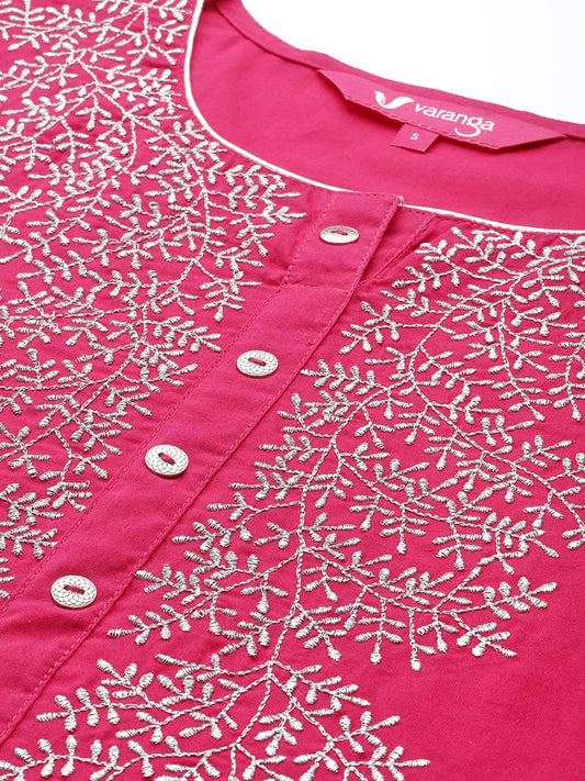 Dhiyona VA Women's Fuchsia Pink Ethnic Motifs Pure Cotton Kurta with Palazzos & With Dupatta
