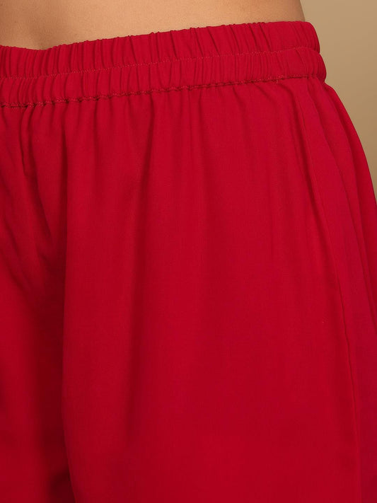 Dhiyona VA Women'sMagenta Floral Embroidered Panelled Silk Georgette Kurta With Trouser With Dupatta