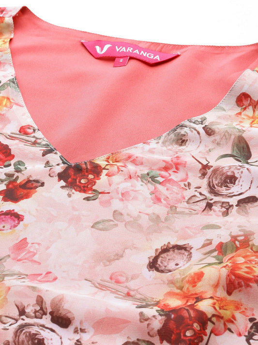 Buy 2 Get 1 FreeVendor:Dhiyona VADhiyona VA Women's Coral Floral Printed Empire Kurta with Sharara & With Dupatta