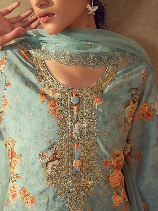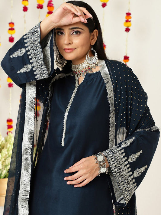 Dhiyona VA Women's Blue Ethnic Motifs Embroidered Kurta with Trousers & Dupatta