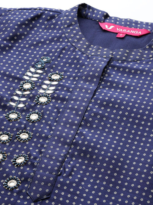 Buy 2 Get 1 FreeVendor:Dhiyona VADhiyona VA Women's Navy Blue Printed Kurta with Trousers & Dupatta