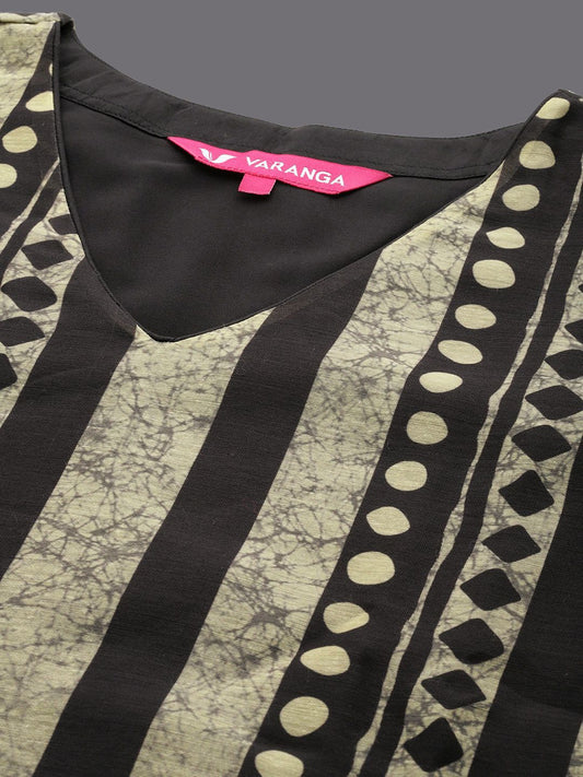 Dhiyona VA Women'sStriped V Neck Chanderi Cotton Straight Kurta & Trousers With Dupatta