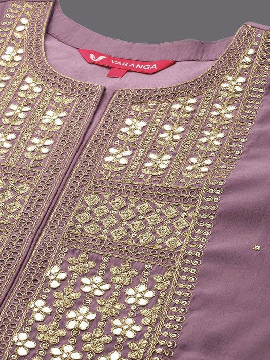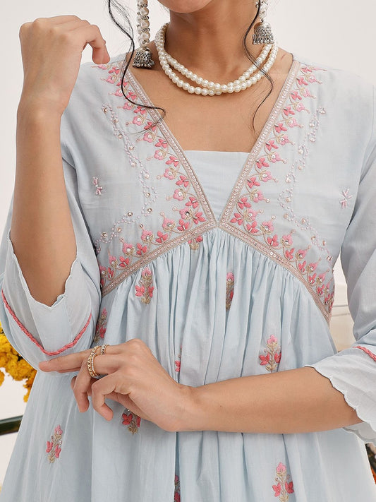 Dhiyona VA Women'sFloral Embroidered Empire Sequinned Pure Cotton Kurta & Trousers With Dupatta