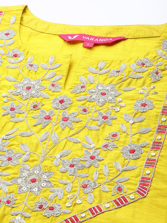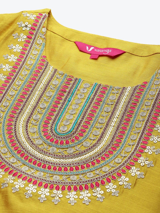 Dhiyona VA Women's Mustard Yellow Embroidered Sequinned Kurta Set with Dupatta