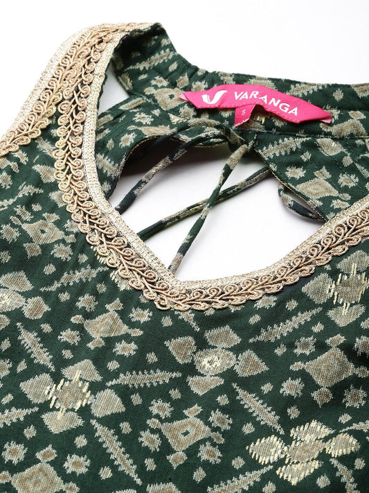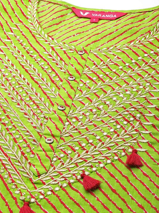Dhiyona VA Women's Green Leheriya Embroidered Pure Cotton Kurta with Trousers