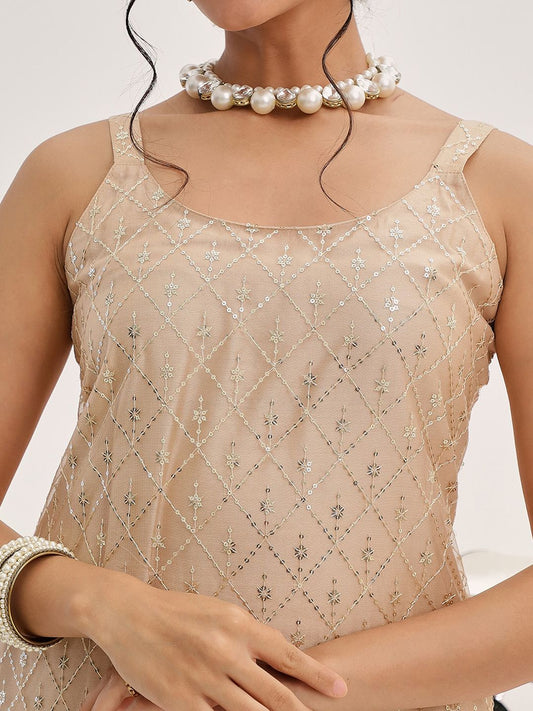 Dhiyona VA Women's Ethnic Motifs Embroidered Sleeveless Kurta with Sharara & Dupatta