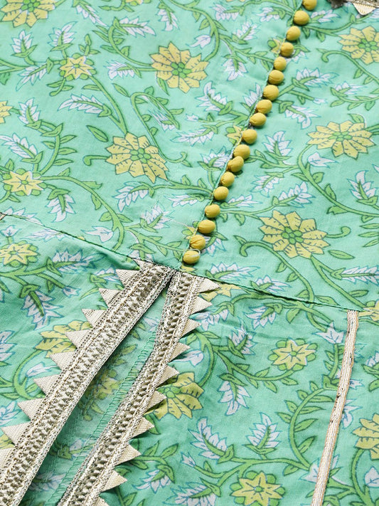 Buy 2 Get 1 FreeVendor:Dhiyona VADhiyona VA Women's Green Floral Printed Pure Cotton Kurti with Sharara