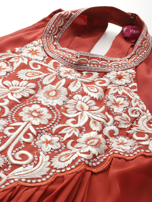 Dhiyona VA Women'sFloral Yoke Design Pleated Sequinned Kurta with Trousers