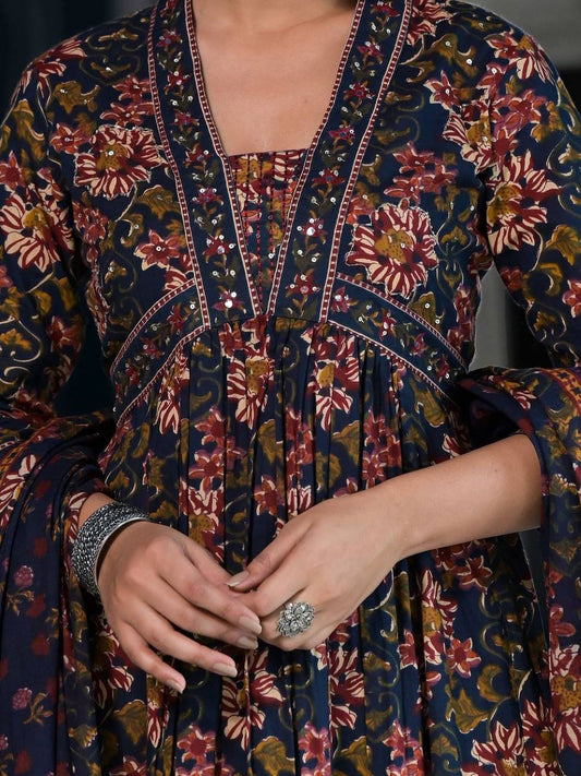 Buy 2 Get 1 FreeVendor:Dhiyona VADhiyona VA Women'sFloral Printed & Sequinned Pure Cotton Anarkali Kurta With Trouser & Dupatta