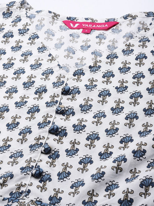 Buy 2 Get 1 FreeVendor:Dhiyona VADhiyona VA Women's White Floral Printed Regular Pure Cotton Kurta with Palazzos & With Dupatta