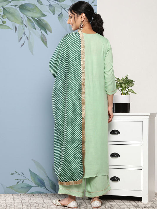 Dhiyona VA Women's Green Kurta with Palazzos & With Dupatta