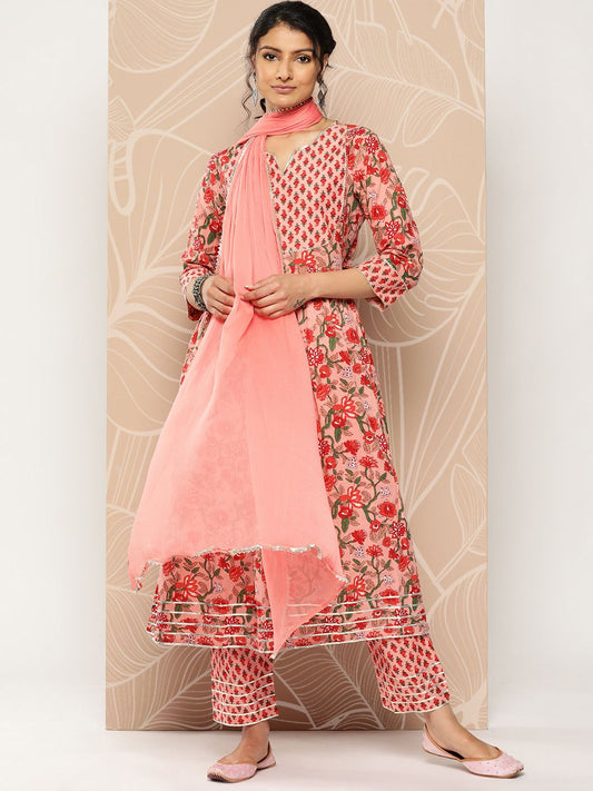 Buy 2 Get 1 FreeVendor:Dhiyona VADhiyona VA Women'sFloral Printed Empire Gotta Patti Pure Cotton Kurta With Trousers & Dupatta