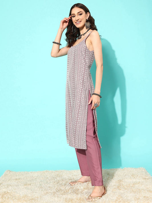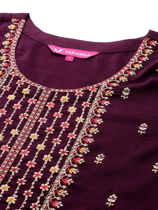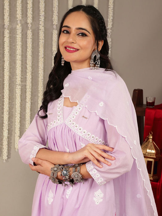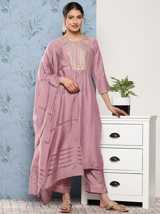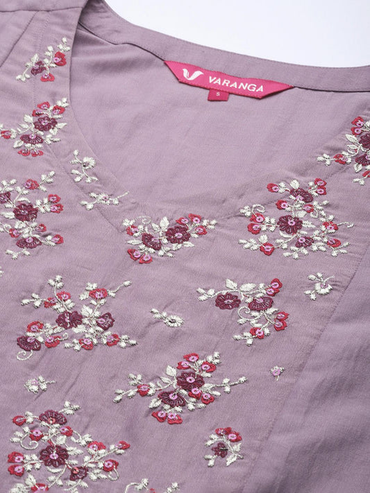 Dhiyona VA Women's Mauve Floral Embroidered Sequinned Kurta with Trousers & With Dupatta