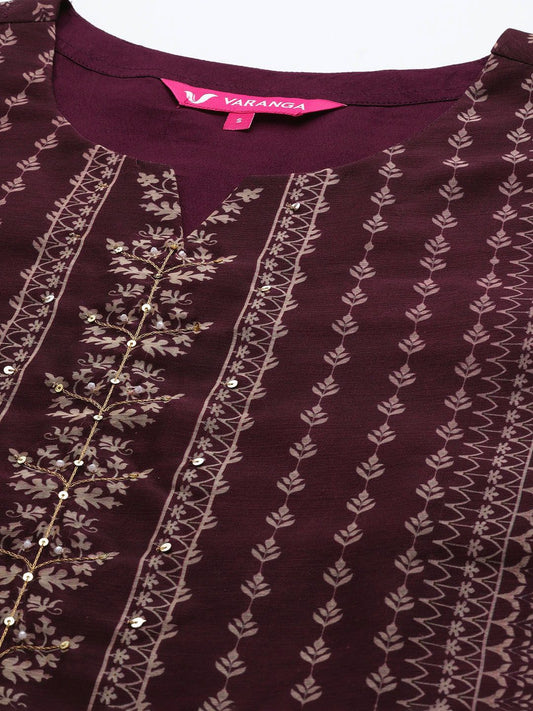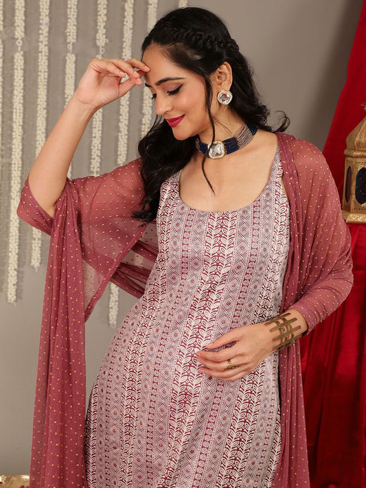 Dhiyona VA Women's Mauve Ethnic Motifs Embroidered Regular Kurta with Trousers & With Dupatta