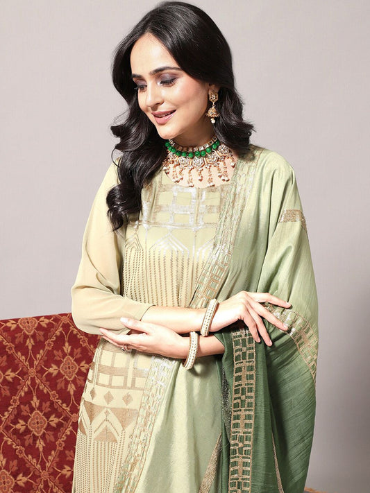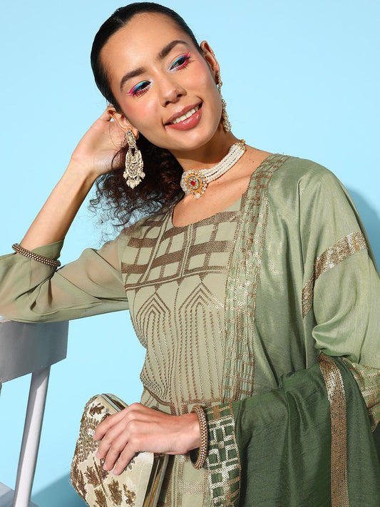 Dhiyona VA Women's Geometric Embroidered Regular Sequinned Kurta With Trousers & Dupatta