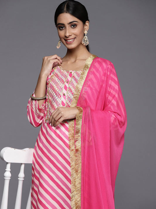 Buy 2 Get 1 FreeVendor:Dhiyona VADhiyona VA Women'sLeheriya Printed Gotta Patti Kurta with Trousers & Dupatta