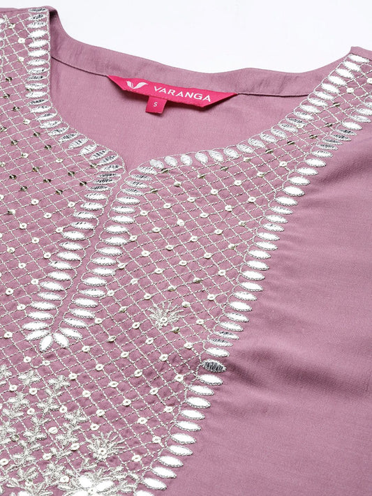 Dhiyona VA Women's Mauve Embroidered Kurta with Palazzos & With Dupatta