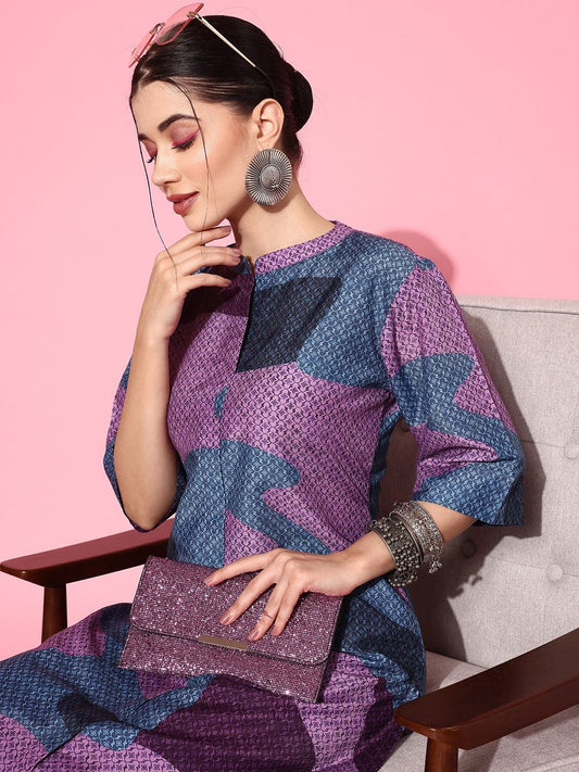 Buy 2 Get 1 FreeVendor:Dhiyona VADhiyona VA Women'sAbstract Printed Mandarin Collar Kurta with Palazzos