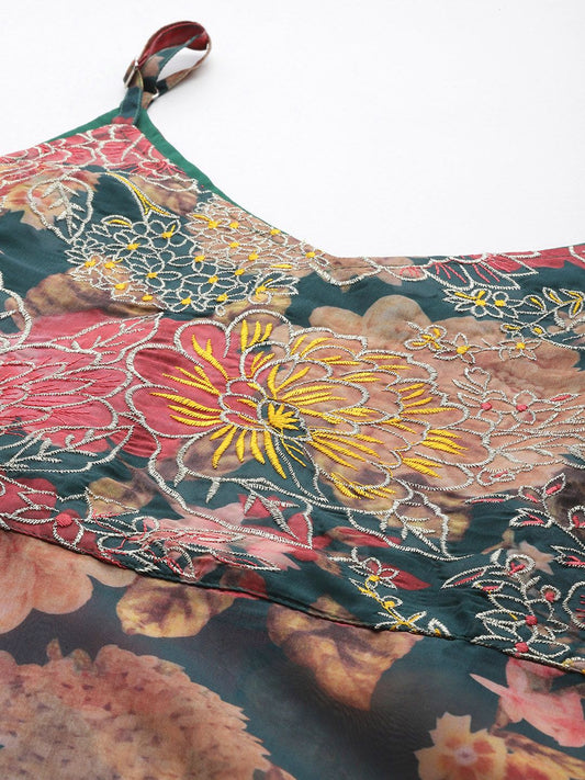 Dhiyona VA Women's Green Embroidered Sequinned Kurta With Sharara & Dupatta