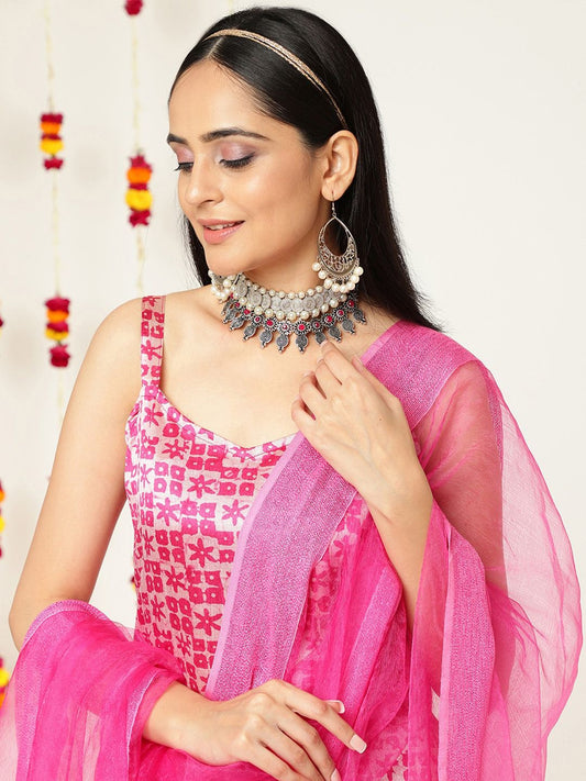 Buy 2 Get 1 FreeVendor:Dhiyona VADhiyona VA Women's Batik Abstract Print Shoulder Straps Straight Kurta With Trousers & Dupatta
