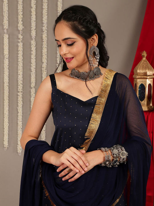 Dhiyona VA Women'sEmbroidered Empire Sequinned Kurta With Trousers & Dupatta