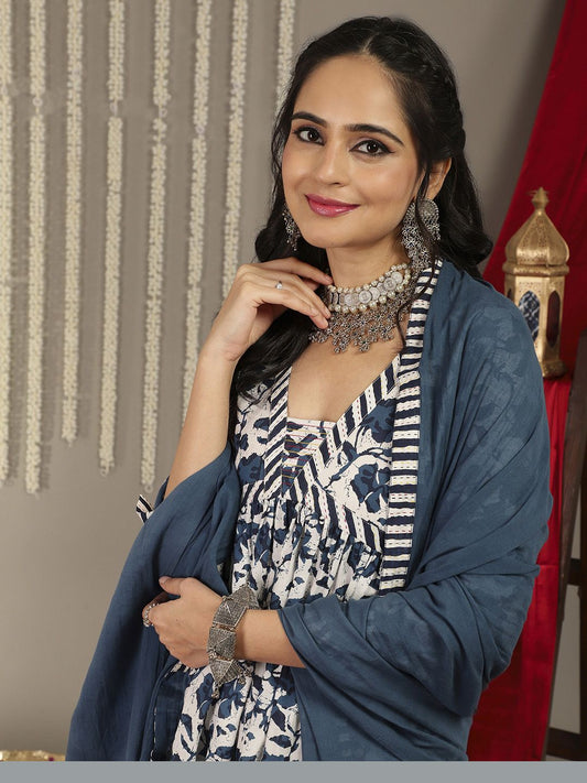 Buy 2 Get 1 FreeVendor:Dhiyona VADhiyona VA Women'sFloral Printed V-Neck Pure Cotton Empire A-Line Kurta & Palazzo With Dupatta