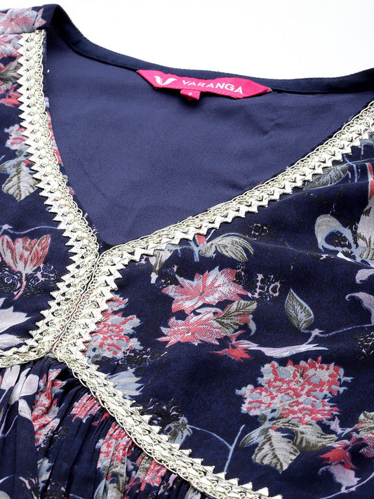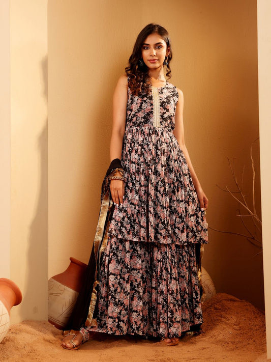 Buy 2 Get 1 FreeVendor:Dhiyona VADhiyona VA Women'sFloral Printed Round Neck Empire Anarkali Kurta With Sharara And Dupatta