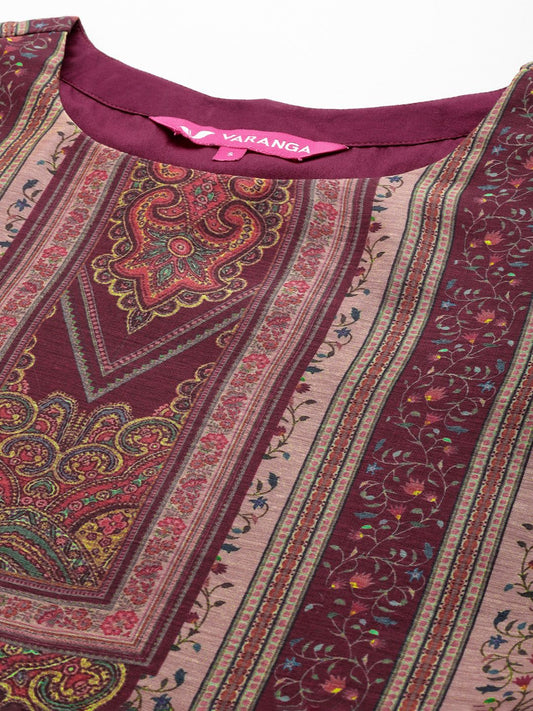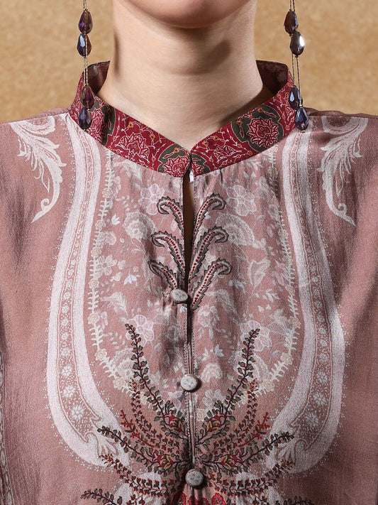 Buy 2 Get 1 FreeVendor:Dhiyona VADhiyona VA Women'sPaisley Printed Mandarin Collar Straight Kurta With Trousers