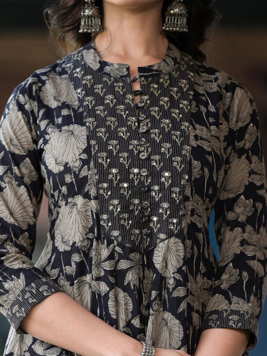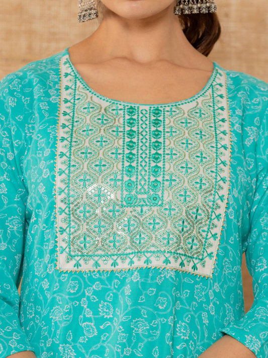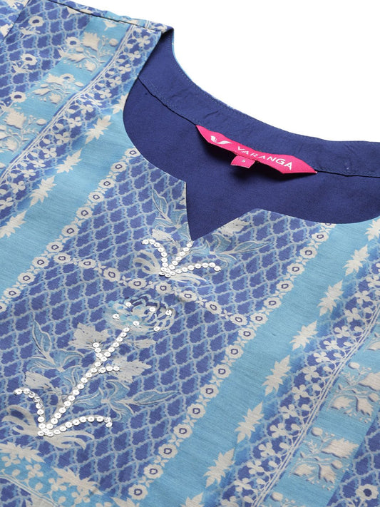 Buy 2 Get 1 FreeVendor:Dhiyona VADhiyona VA Women's Blue Floral Printed Sequinned Kurta with Trousers & With Dupatta