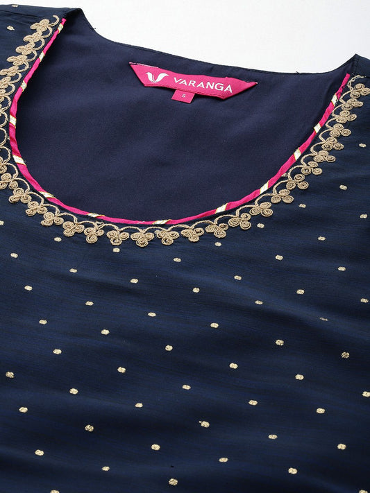 Dhiyona VA Women's Zari Kurta With Trousers & Dupatta