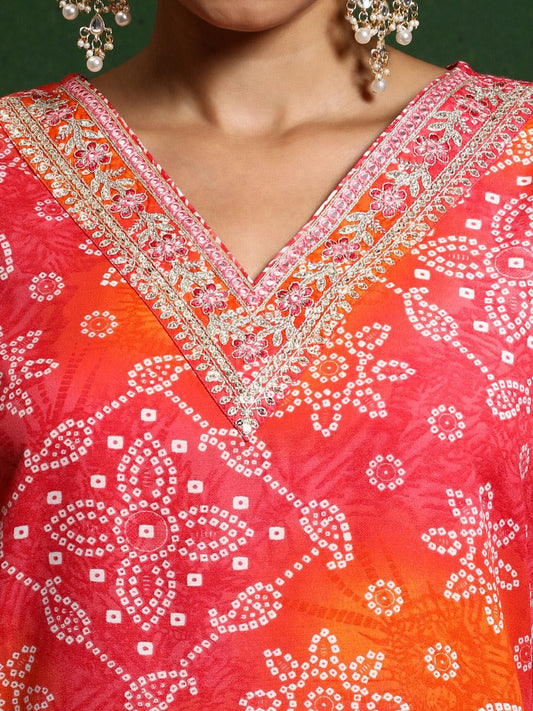 Buy 2 Get 1 FreeVendor:Dhiyona VADhiyona VA Women'sBandhani Printed Sequinned Kurta With Trousers & Dupatta