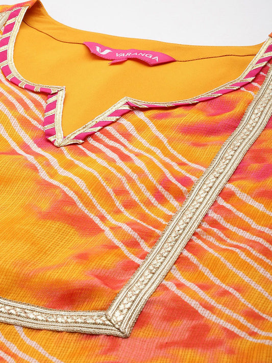 Buy 2 Get 1 FreeVendor:Dhiyona VADhiyona VA Women's Leheriya Printed Straight Kurta with Trousers & Dupatta