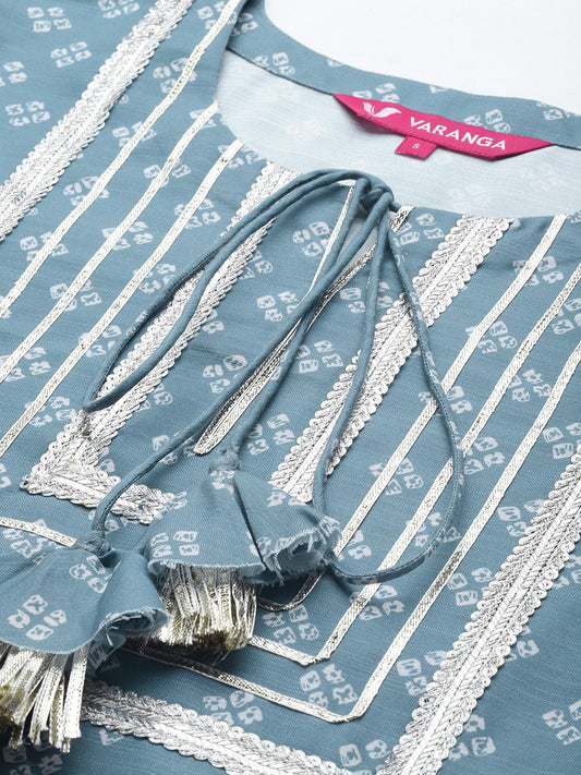 Dhiyona VA Women's Grey Bandhani Yoke Design Sequinned Kurta with Trousers & Dupatta