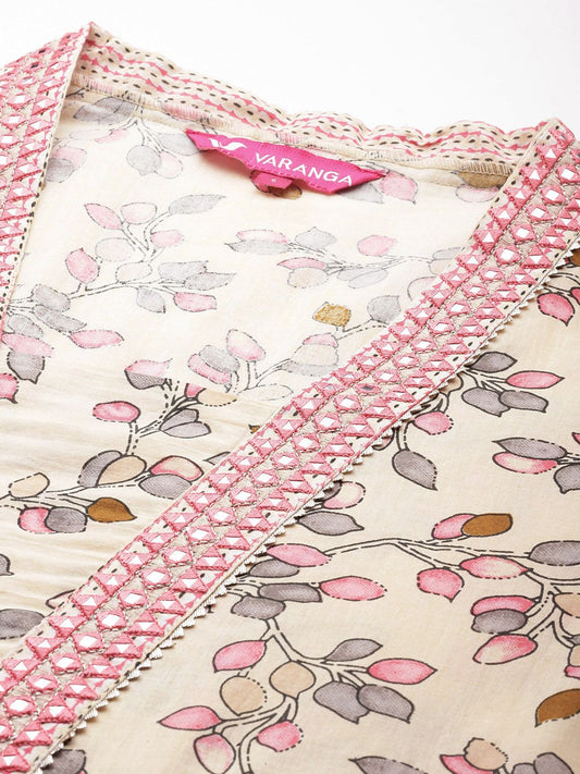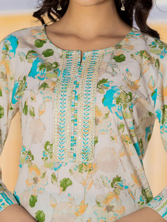 Buy 2 Get 1 FreeVendor:Dhiyona VADhiyona VA Women'sFloral Printed Mirror Work Pure Cotton Kurta with Trousers & Dupatta