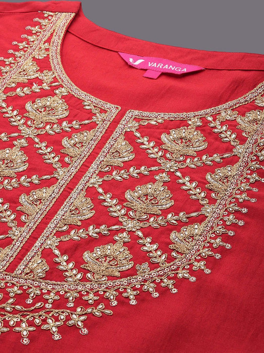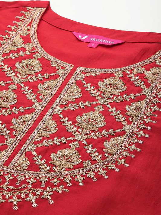 Dhiyona VA Women'sPlus Size Embroidered Chanderi Silk Kurta with Trousers & With Dupatta