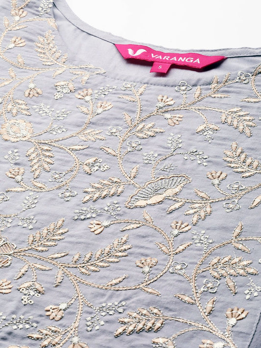 Dhiyona VA Women's Floral Embroidered Thread Work Kurta with Trousers & With Dupatta