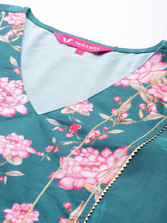 Buy 2 Get 1 FreeVendor:Dhiyona VADhiyona VA Women's Floral Printed Chanderi Silk Kurta with Trousers & Dupatta