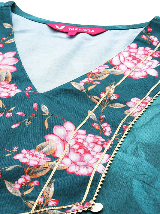 Buy 2 Get 1 FreeVendor:Dhiyona VADhiyona VA Women's Floral Printed Regular Gotta Patti Kurta with Trousers & Dupatta