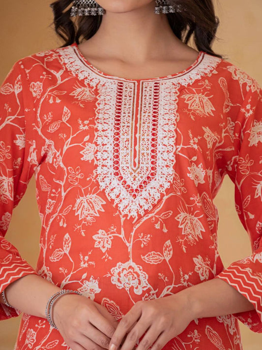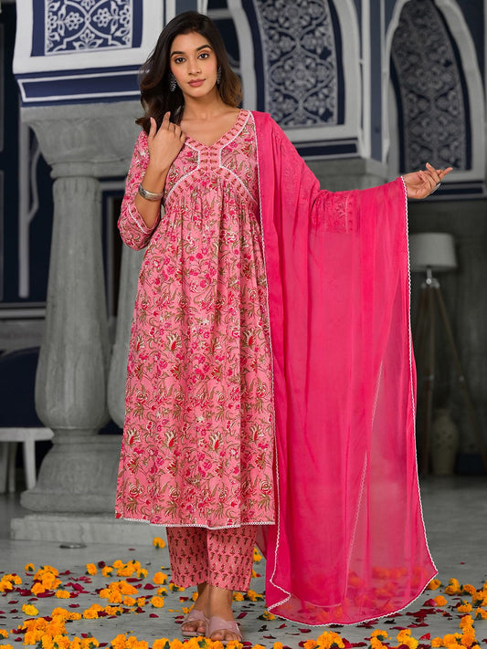 Dhiyona VA Women's Floral Embroidered Gotta Patti Pure Cotton Kurta with Trousers & Dupatta
