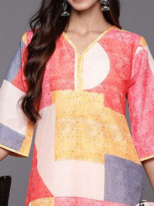 Buy 2 Get 1 FreeVendor:Dhiyona VADhiyona VA Women'sAbstract Printed Shirt Collar Straight Kurta With Trouser