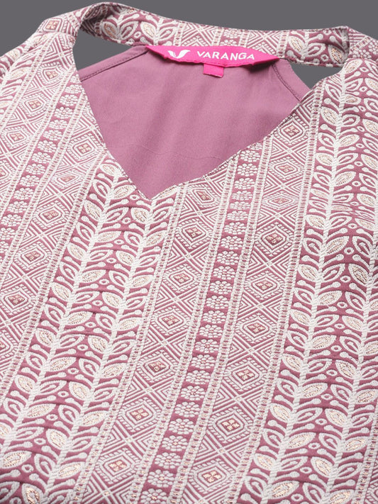Dhiyona VA Women's Geometric Embroidered Kurta with Trousers & Dupatta
