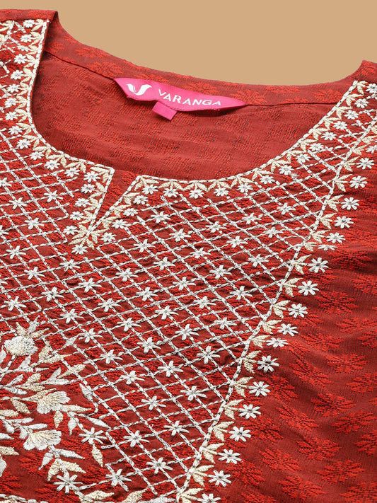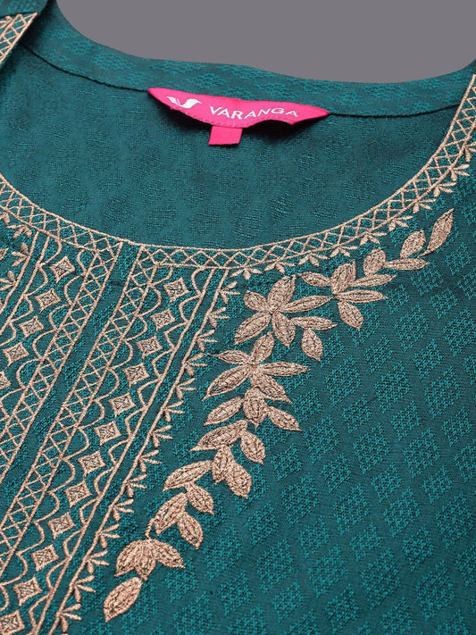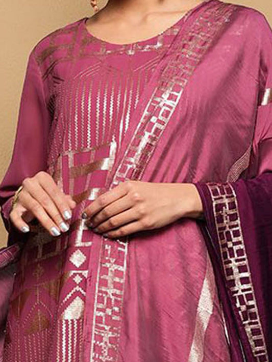 Dhiyona VA Women'sGeometric Woven Design Thread and Zari Work Straight Kurta with Trousers & Dupatta