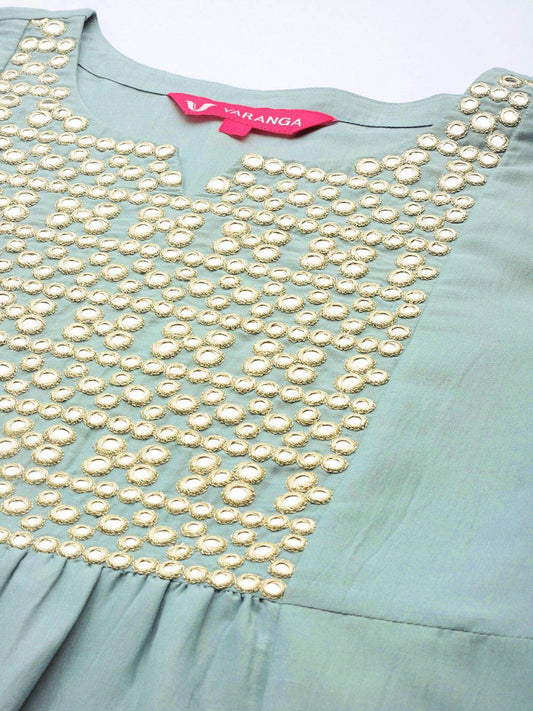 Dhiyona VA Women'sMirror Work Yoke Design Straight Kurta with Trousers & Dupatta