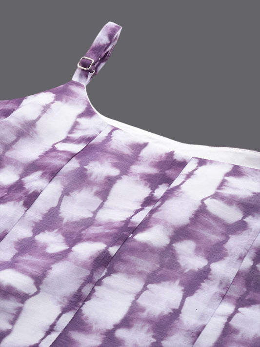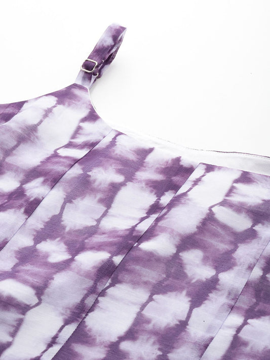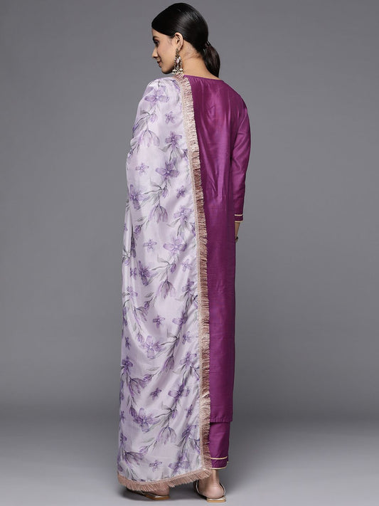 Buy 2 Get 1 FreeVendor:Dhiyona VADhiyona VA Women'sViolet Ombre Dyed Printed Chanderi Silk Anarkali Kurta With Trousers & Dupatta