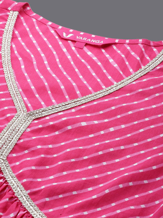 Buy 2 Get 1 FreeVendor:Dhiyona VADhiyona VA Women's Leheriya Printed Pleated Gotta Patti Pure Cotton Kurta with Trousers & With Dupatta
