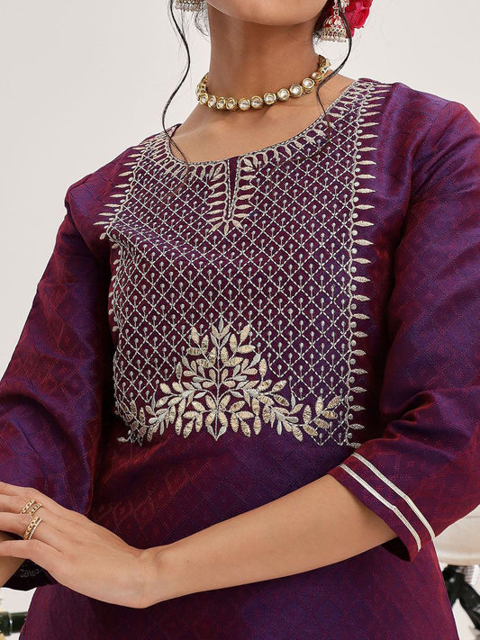 Dhiyona VA Women'sFloral Thread Zari Embroidered Straight Kurta & Trousers With Dupatta