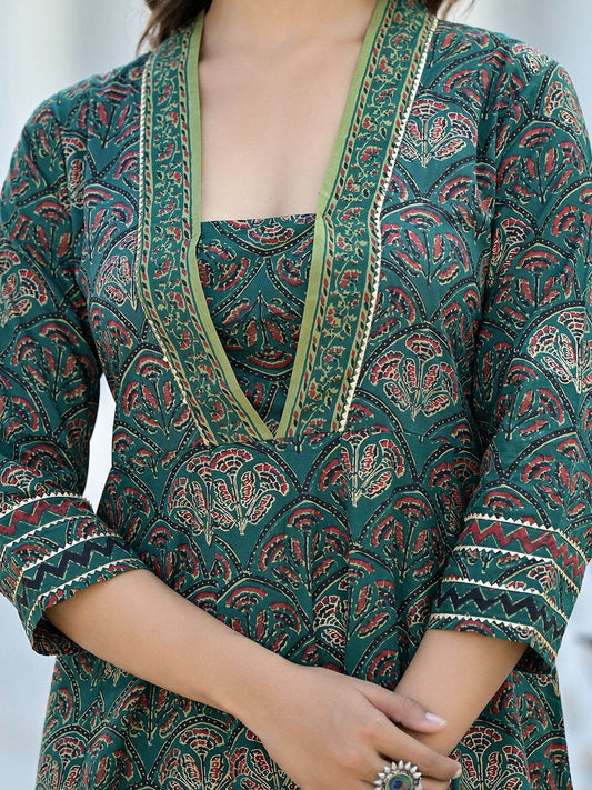Buy 2 Get 1 FreeVendor:Dhiyona VADhiyona VA Women's Ethnic Motifs Printed Gotta Patti Cotton Kurta with Trousers & Dupatta